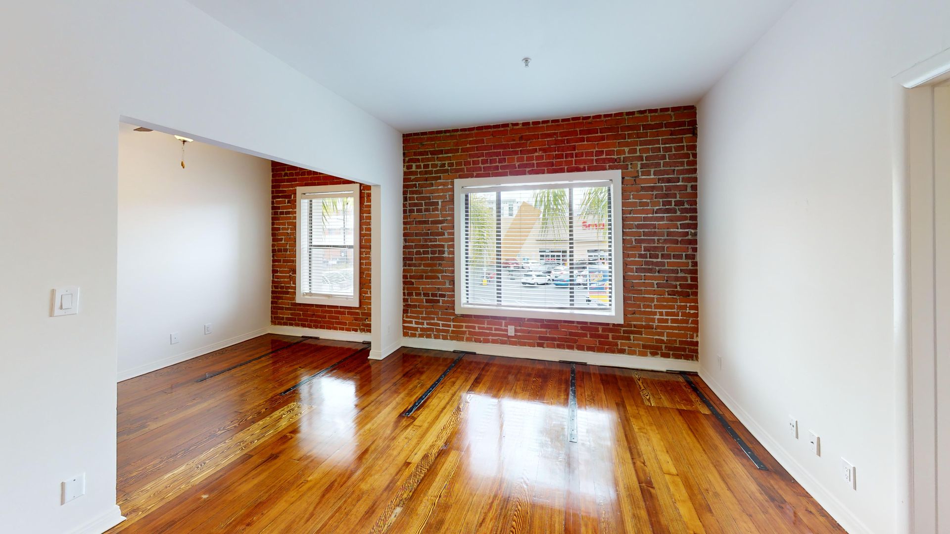 These apartment homes feature modern kitchens with stainless steel appliances, sinks, and faucets. Exposed brick walls add character and charm to select apartment homes at Burnside Villas Apartments.